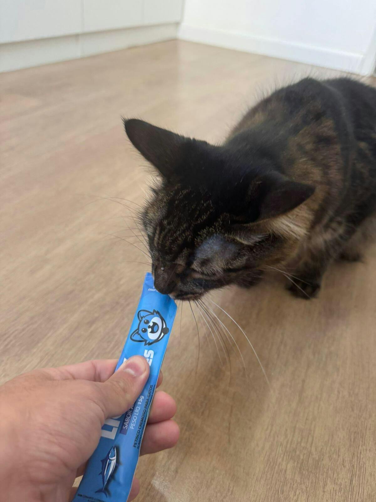 - Snack cremoso para gatos, utilizado como complemento da dieta diária;