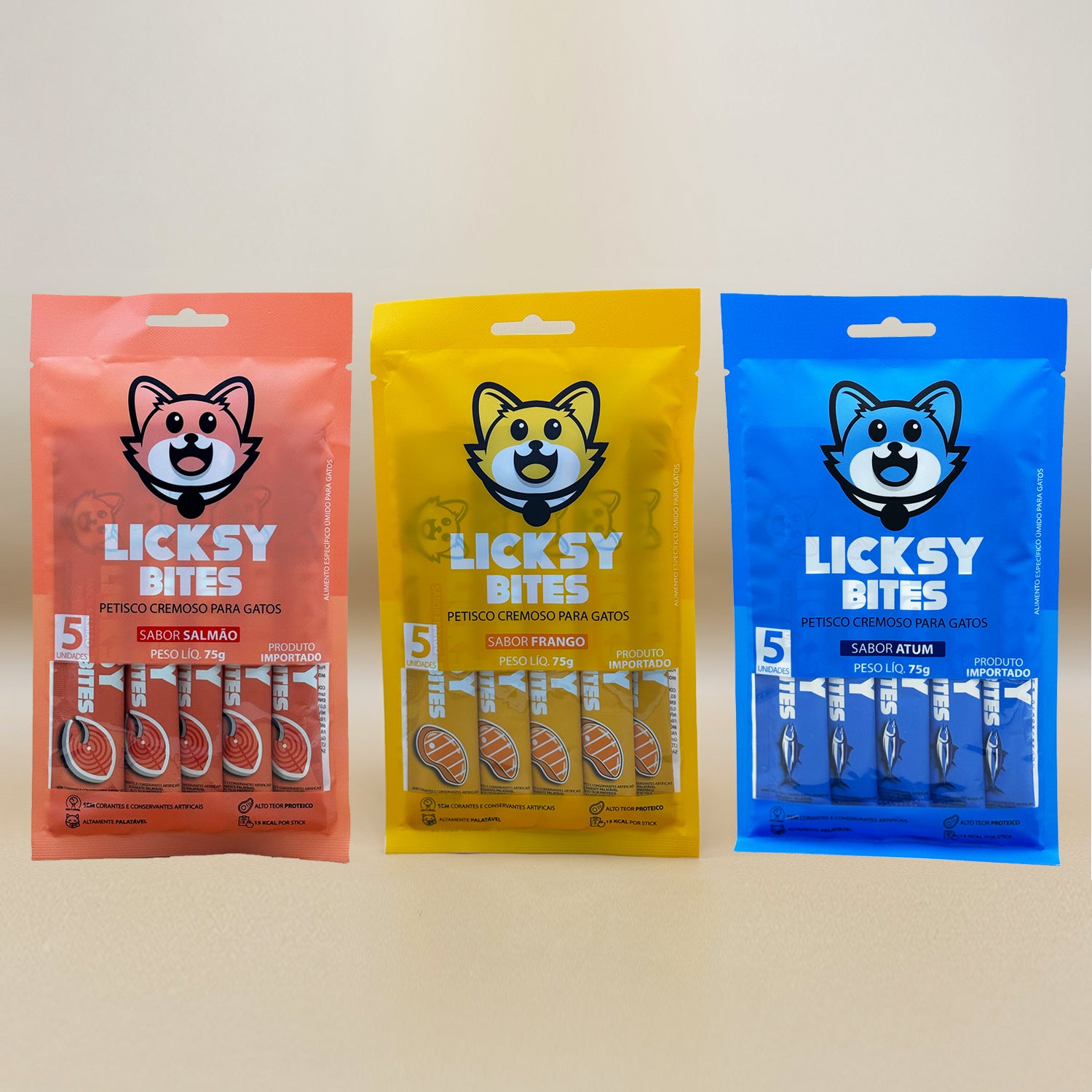 Petisco Cremoso para Gatos Licksy Bites Sabor Mix - 3 Packs (15 unidades)