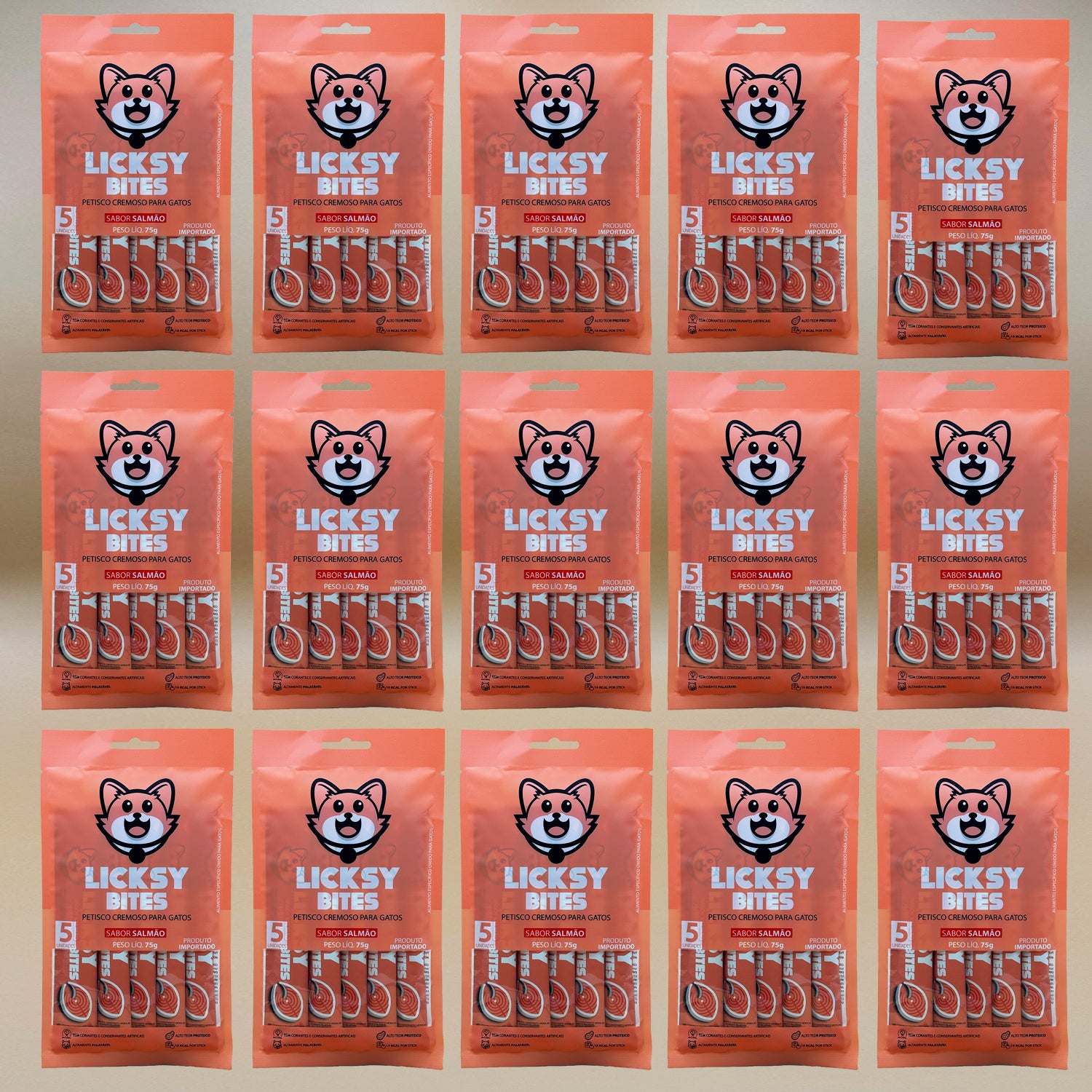 Petisco Cremoso para Gatos Licksy Bites Sabor Salmão - 15 Packs (75 unidades)
